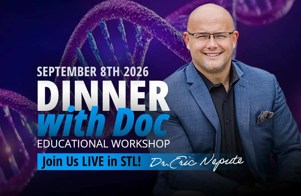 Dr. Eric Nepute invites you to September’s Dinner with Doc at Andre’s South in St. Louis on September 8. This month’s topic: why some people never seem to get better — even when they’re doing “all the right things.” Learn how genetics influence healing and recovery, and how personalized testing helps you build a plan that works with your body instead of against it.