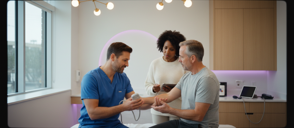 We run total testosterone, free testosterone, SHBG, estradiol, DHEA-S, cortisol patterns, and metabolic markers. We also assess thyroid function, nutrient levels, and insulin sensitivity because hormone production does not happen in isolation. This reveals both the decline and it's specific causes.